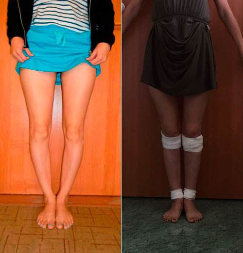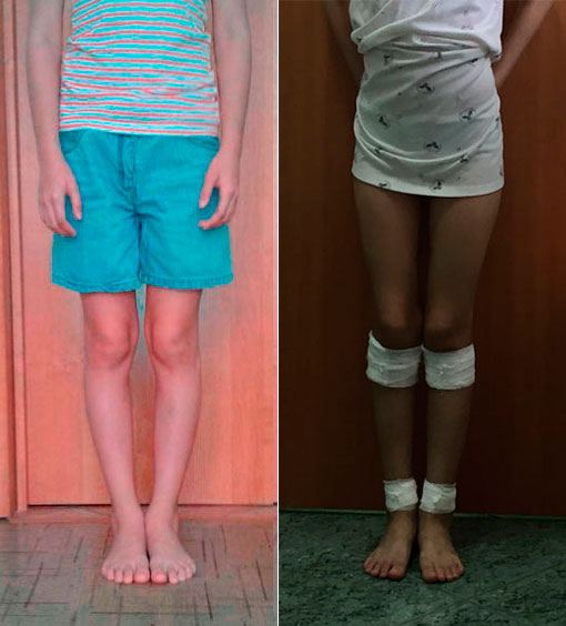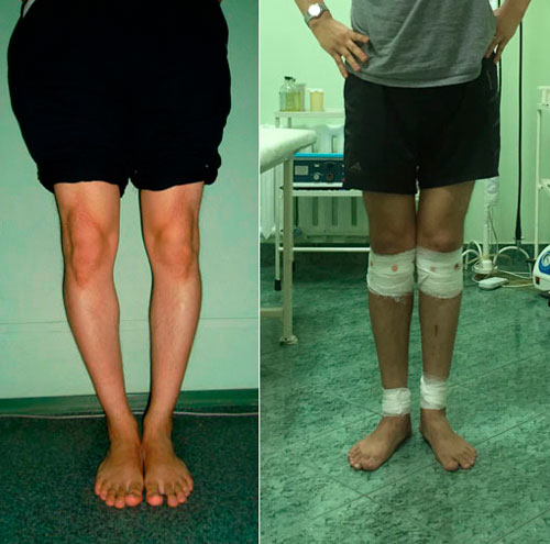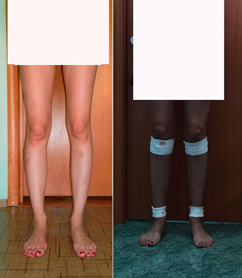 Левая голень более деформирована.