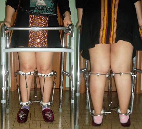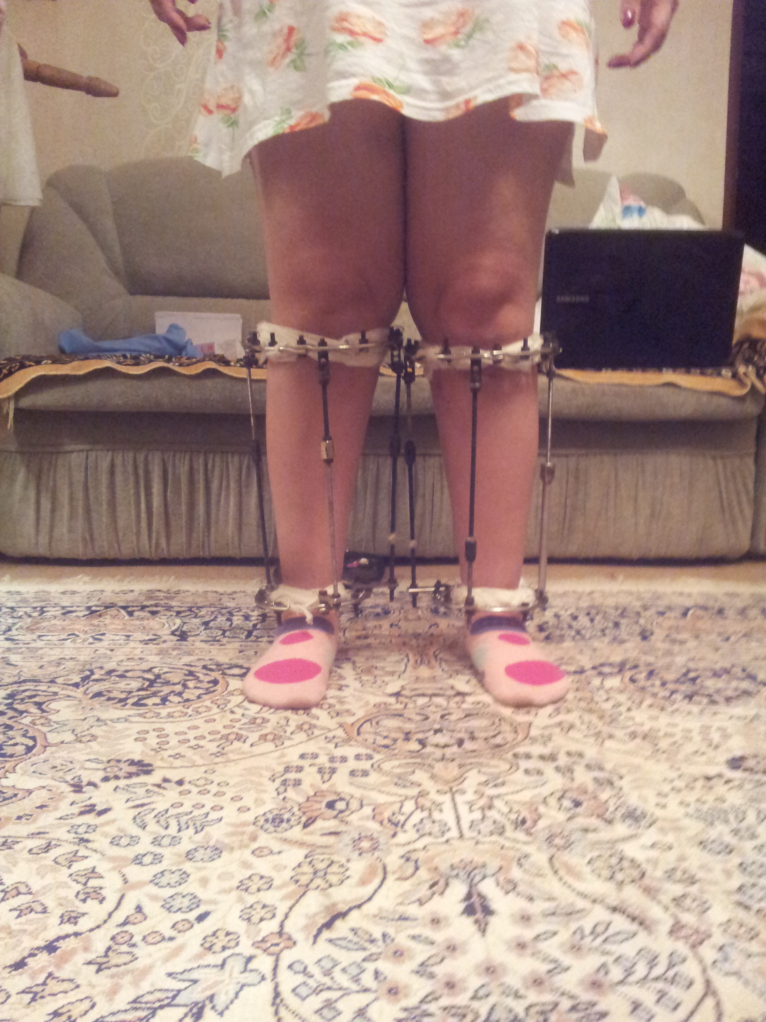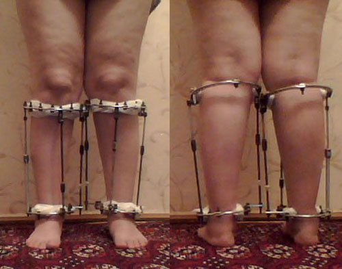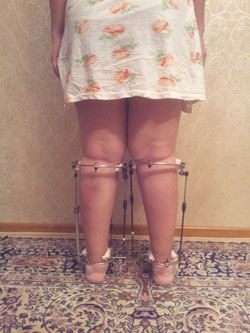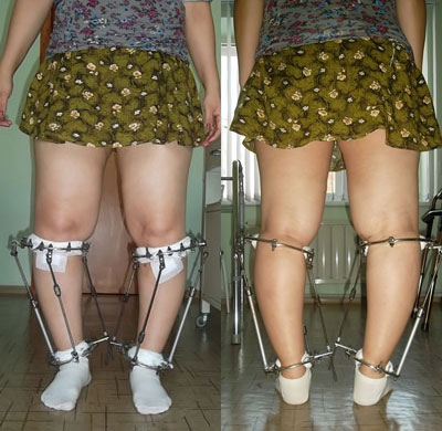 В феврале 2012г. пациентке была проведена операция по исправлению О- образной деформации ног в г. Волгограде (Россия). Пациентку привлекла рекламная акция "Исправление деформации за 55 дней!". На 55-ый день аппараты были сняты. В результате короткого срока, слабого сращения, произошло значительное увеличение О- образной деформации.