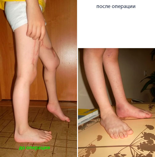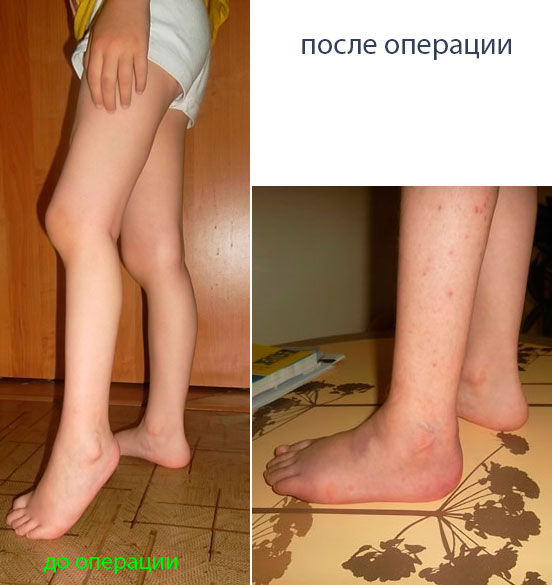 Вид операции: полуоткрытая ахилотомия по Байеру (через два крошечных прокола кожи), томия сгибателей 1-5 пальца левой стопы. Фиксация гипсовой лангетой сроком на 3 недели. После снятия прошла курс массажа и физиолечения.