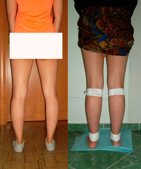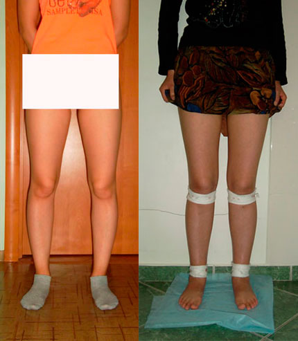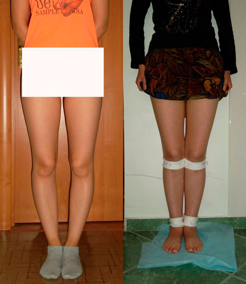 У пациентки: двусторонняя ротация, плоскостопие тяжёлой степени.