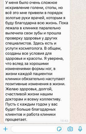 Впервые в жизни, пациентка пошла нормальной походкой. Стопы стоят в правильном положении.